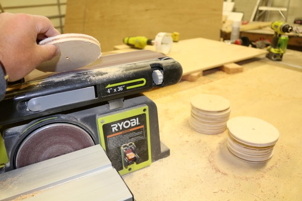 Slipa skivorna och spelbrädan av plywood med en planslip. Använd en bandslip för skivorna om du har en sådan.